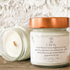 Aromatherapy self-care candle for happiness. Made from 100% natural vegan soy wax and featuring a crackling wood wick. Perfect gift for anyone who loves scented candles and hidden crystal gemstone reveals. Each candle will contain a mystery crystal.