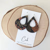These handmade, double-sided earrings are absolutely beautiful. A floral pattern in reds, greens and blues on a black background, with a black cork backing. These are soft to the touch, elegant and extremely lightweight!