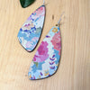 These handmade, double-sided earrings are absolutely beautiful. A bright watercolour type floral pattern on a blue background, with a black cork backing. These are soft to the touch, elegant and extremely lightweight!